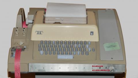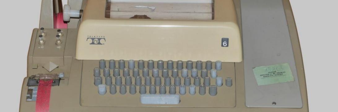 In teletyping (from 1844) and telex systems (from 1920), electronic typewriters were used for recording a forwarding data. The ASR33 presented here can print, communicate, as well as read and create 8-channel punched tapes. It was designed in 1964 (Teletype, USA). As it was very stable and it documented the computer/operator activities very precisely, it was widely used for a large number of computers at its time. The collection has 4 of these devices It weights 20 kilograms a desktop computer, its operating speed is 60 words / minute.