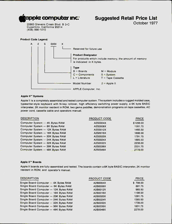 Unlike its predecessor (Apple I), the first computer to be mass-marketed was fully assembled, and could be connected to a display monitor. The version with 4K memory cost 1298 US dollars. This machine, a pioneer of the time, had many advanced features (colour, graphics options, expansion slots, built-in BASIC, etc. ) but it did not have a disk drive. Programs and data had to be saved on cassettes, which turned out to be a slow and unreliable process. The problem was that disks, even floppy disks, required expensive hardware controllers and complicated software. This time, like so many times in the early years of Apple, it was Steve Wozniak who came up with a solution. Or at least he found a solution to one half of the problem: he designed a floppy disk controller using only eight integrated circuits, which, together with some simple software (written by Wozniak and Randy Wigginton) was exhibited at CES in January 1978.