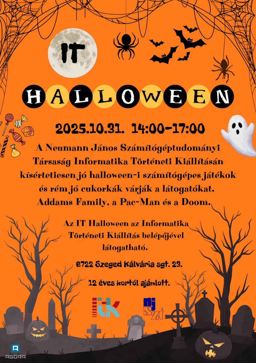 A Neumann János Számítógéptudományi Társaság Informatika Történeti Kiállításán kísértetiesen jó halloweeni számítógépes játékok és rém jó cukorkák várják a látogatókat. Addams Family, a Pac-Man és a Doom. Az IT Halloween az Informatika Történeti Kiállítás belépőjével látogatható. Ajánlott korosztály 12 éves kortól.